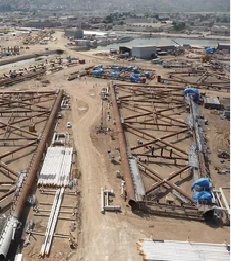 - Ground bearing capacity above 50 mT/m² everywhere on the erection areas to ensure safe erection activities including crawling with heavy crawler cranes